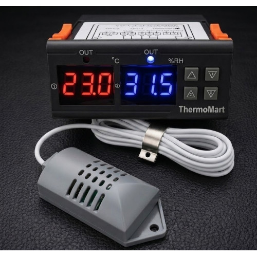 ThermoMart DIN302 Digital Dual-Relay Temperature & Humidity Controller for Humidors & Wineadors | With High/Low Alarm System